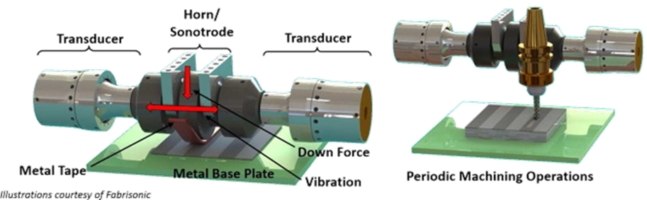 UKAEA partnered with Fabrisonic LLC, a US spin-out from EWI, whose hybrid UAM system combines additive layer-by-layer metal deposition with ultrasonic welding via a CNC-controlled sonotrode. The process enables solid-state bonding of similar or dissimilar materials at low temperatures; therefore, exploratory trials were conducted to see if the method could work on HTS tapes.